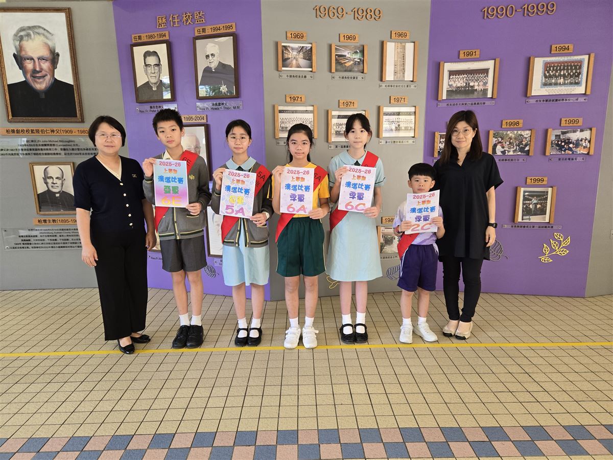 5A 陳槿坭5A 李家銘5A 梁靖嵐5A 李嘉文5A 徐嘉諾5A 余宙洋5B 歐文傑5B 陳銘曄5B 鍾靖軒5B 朴初恩5B 蘇子博5C 何向鎣5C 廖梓泳5C 余奕揚5D 司徒若嵐5D 史晉寧5E 敖然5E 梁紹康5E 曾裕翔6A 吳瑋廷6A 譚凱月6A 黃詩堯6A 叶希怡6B 陳心怡6B 趙雪藍6B 龔芯儀6B 楊逸僖6C 簡卓樂6C 譚家皓6C 唐詩菡6C 黃子豪6D 江亦僖6D 簡寶淇6D 林彥宏6D 馬柏希6D 彭博森6E 張心玥6E 簡芯穎6E 盧佑傑6E 陶慧喬6E 黃海桐